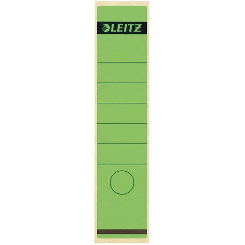 Rückenschilder breit, lang mit Loch 61 x 285 mm, Beutel mit 100 Stück, Farbe grün, Hersteller: Leitz, Herstellernummer: 1640-10-55, EAN: 4002432302338, Selbstklebendes Ordner-Rückenschild aus chlorfrei gebleichtem Papier, lösungsmittelfrei., Preis je Packung