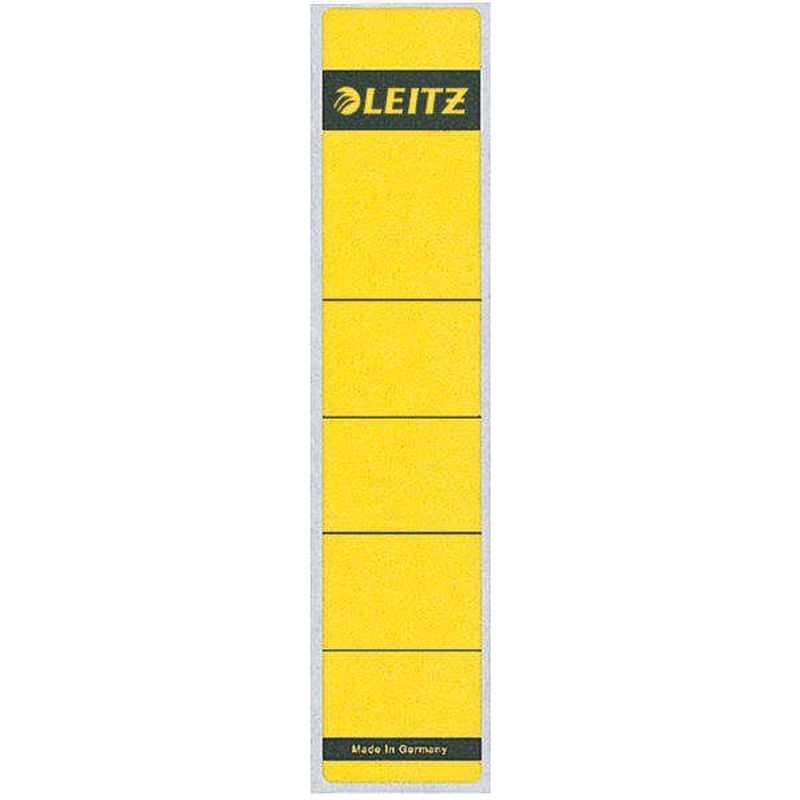 Rückenschilder schmal, kurz 39 x 192 mm, Beutel mit 10 Stück, Farbe gelb, Hersteller: Leitz, Herstellernummer: 1643-00-15, EAN: 4002432302475, Selbstklebendes Ordner-Rückenschild aus chlorfrei gebleichtem Papier, lösungsmittelfrei., Preis je Packung