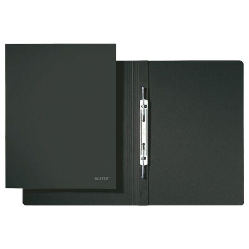 Schnell-, Präsentationshefter, Klemmmappen, Farbe schwarz, Hersteller: Leitz, Herstellernummer: 3040-00-95, EAN: 4002432336494, Robuste Spiralmechanik. Bei gelöster Hakendeckschiene kann wie in einem Buch geblättert werden. Für kaufmännische- und Amtsheftung. Vorderdeckel mit Beschriftungslinien. Aus 300 g/qm Colorspankarton (RC). Für A4. Fassungsvermögen: bis zu 250 Blatt ( 80 g), Preis je Stück
