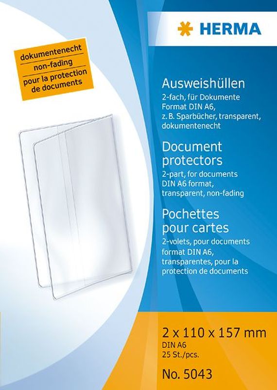 Schutz- und Ausweishüllen aus hochwertiger, strapazierfähiger und transparenter Polypropylen-Folie (PP). Leichter und schneller Zugriff auf die Dokumente durch praktische Griffaussparung an den Ausweishüllen. Absolut dokumentenecht.