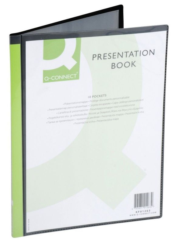 Ringmappen, Sichtbücher, Präsentations-Ringbücher, Ausführung mit 10 Hüllen, Hersteller: Connect, Herstellernummer: KF01263, EAN: 5705831012639, Sichthüllenmappe aus Polypropylen, mit fest eingeschweißten Hüllen. Für Format DIN A4, oben offen. Mit vollflächigem Einschubfach auf Vorderdeckel und Rücken. Farbe schwarz., Preis je Stück
