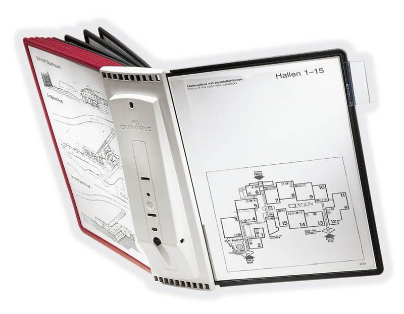 Sichttafeln und Zubehör, Rahmenfarben schwarz, rot, Hersteller: Durable, Herstellernummer: 5631-00, EAN: 4005546501291, Set-Inhalt: 10 Sichttafeln A4 mit Profilrahmen, 1 Tafelträger 5621 und 10 Kunststoffreiter mit Blanko-Einsteckschildern. Für die Wandmontage. Aneinanderreihen mehrerer Tafelträger in beliebiger Anzahl möglich., Preis je Stück