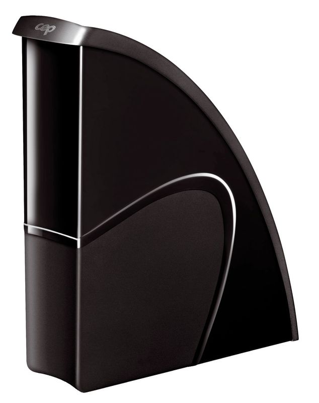 Formschöner Stehsammler mit originellem Design, Kontrast aus matter und glänzender Oberflächenbeschichtung. Kann sowohl im Hoch- als auch im Querformat verwendet werden. Halbrunde Griffmulde. Großes Füllvermögen zur Aufnahme aller DIN A4 bzw. 24 x 32 cm Dokumente. Aus hochschlagfestem Polystyrol. Größe: 85 x 310 x 270 mm (B x H x T).