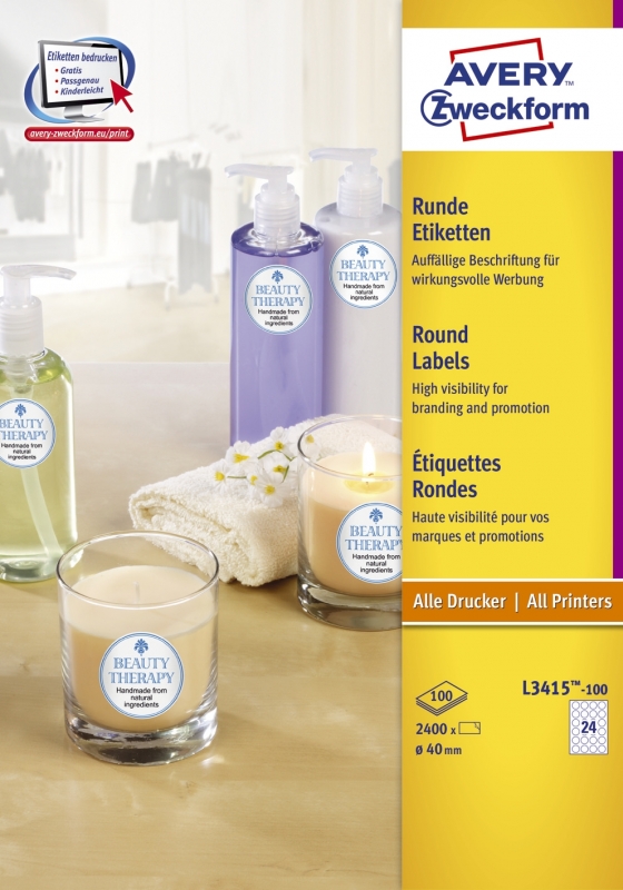 Heben Sie Ihre Verkaufsaktionen hervor um die Aufmerksamkeit der Kunden auf sich zu ziehen! Etiketten in Sonderformaten von Avery Zweckform helfen Ihnen dabei. Die runden Etiketten mit Durchmesser von 40 mm von Avery Zweckform eignen sich optimal für eine auffällige Produktauszeichnung. Dank der kostenlosen Avery Zweckform Vorlagen und Software-Lösungen können Sie die runden Etiketten schnell und einfach gestalten und drucken!, Preis je PG, Hersteller: Avery Zweckform®, Herstellernummer: L3415-100 , EAN: 4004182034156