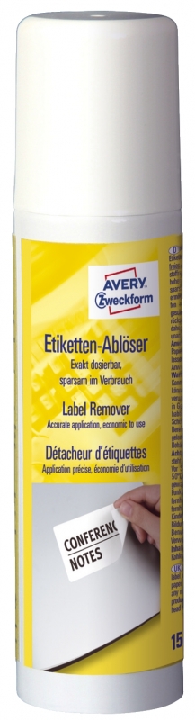 Klebstoff- und Etikettenablöser Inhalt 150 ml, Zum rückstandsfreien Ablösen von Papieretiketten, Harz, Vignetten und Teer. Bei empfindlichen Materialien vor der Anwendung an einer nicht sichtbaren Stelle testen!, Preis je Stück, Hersteller: Avery Zweckform®, Herstellernummer: 3590, EAN: 4004182033784