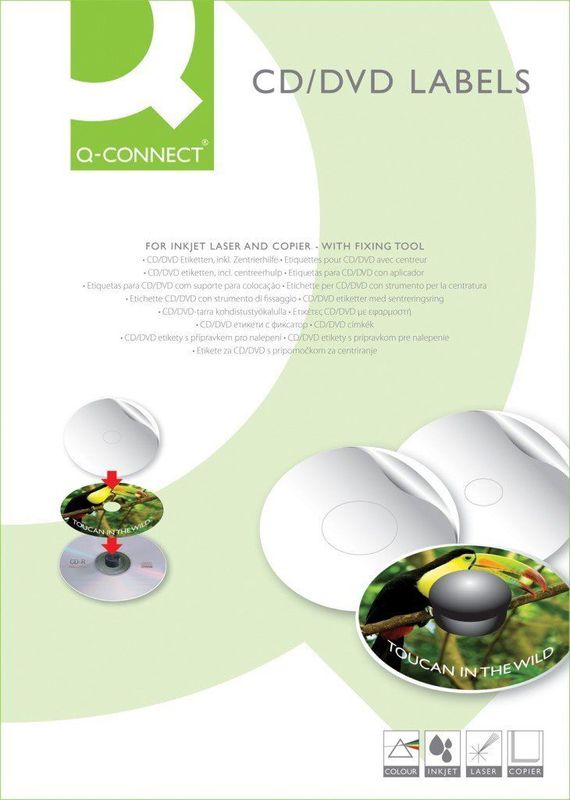 CD-Etiketten Ausführung Classic Size, Blickdichte Etiketten auf A4-Blättern. Mit Zentrierhilfe. Für Inkjet-, Laserdrucker oder Kopierer. Größe: Ø 117 mm. Kostenlose Softwarelösung: www.q-connect.com - zum Downloaden im Internet. Farbe: weiß. Packung mit 25 Blatt (= 50 Stück)., Preis je Packung, Hersteller: Connect, Herstellernummer: KF01579, EAN: 5706002015794