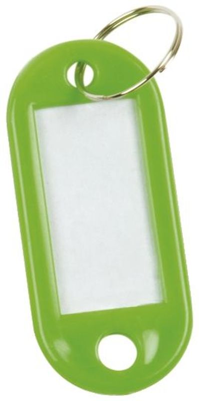 Aus Kunststoff zur Kennzeichnung von Schlüsseln. Mit auswechselbaren Eitketten. Durchmesser des Schlüsselringes 1,5 cm. Größe: 5,0 x 2,2 cm.