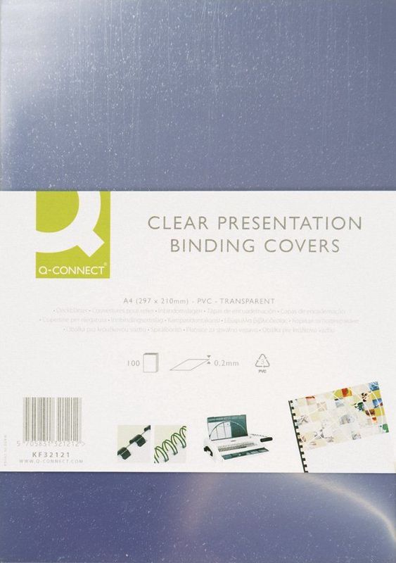 Einbanddeckel für Stanz-, Bindemaschine, Größe A4, Stärke 0,25 mm, Packung mit 100 Stück, Hersteller: Connect, Herstellernummer: KF24011, EAN: 5705831240117, Kristallklare Umschlagfolie für Plastik- und Drahtbindung. , Preis je Packung