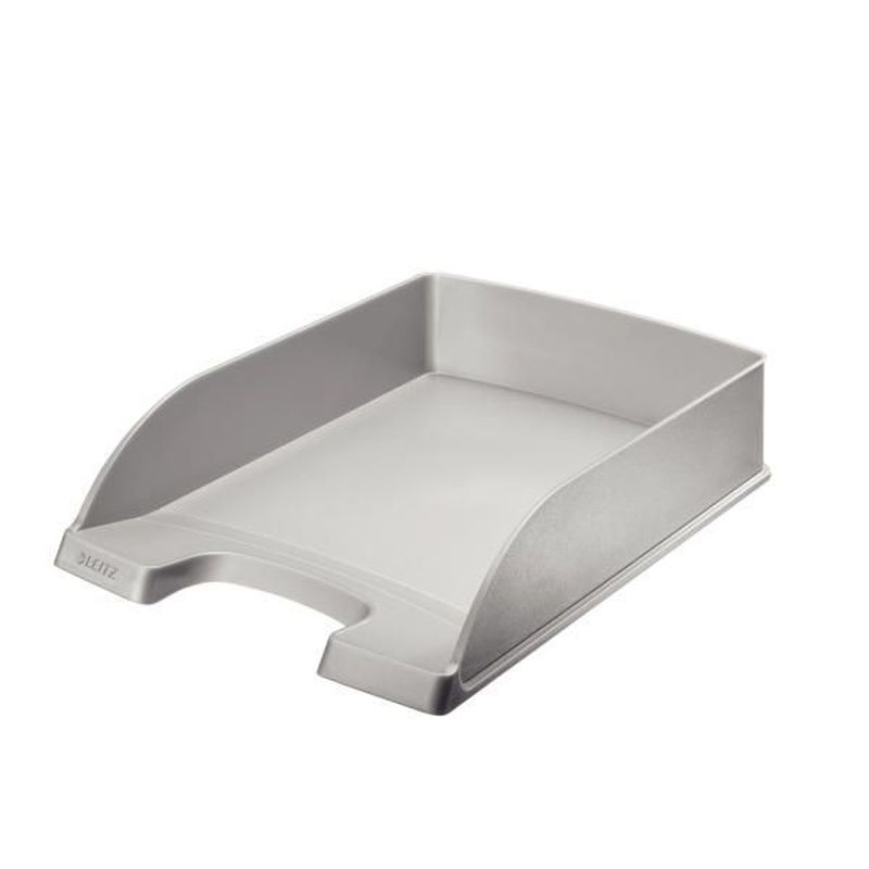 Briefkörbe Plus, Farbe silber, Hersteller: Leitz, Herstellernummer: 5227-00-84, EAN: 4002432374885, Mehrfach übereinander stapelbarer Einzelbriefkorb. Auch stapelbar mit den Leitz Briefkörben Jumbo (Herst.-Nr. 5233) und flach (Herst.-Nr. 5237). Verwendung des Distanzelements (Herst.-Nr. 5234) zur Erhöhung der Kapazität möglich. Mit Greifausschnitt. Aus Polystyrol (PS). Für A4. Größe: 255 x 36 x 70 mm., Preis je Stück