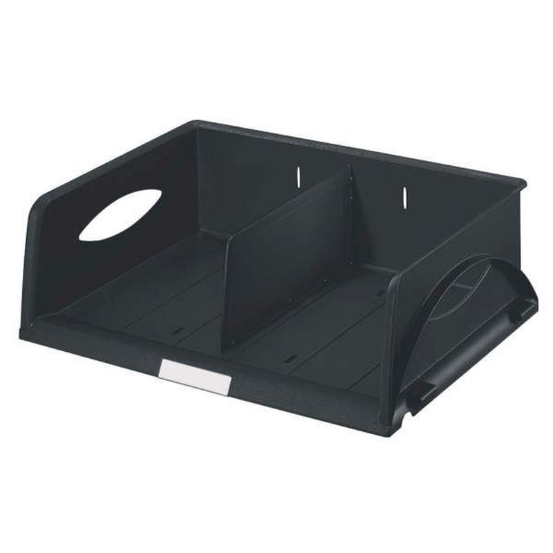 Briefkörbe Sorty A4/C4, Farbe schwarz, Hersteller: Leitz, Herstellernummer: 5230-00-95, EAN: 4002432352913, Mehrfach übereinander stapelbarer Einzelbriefkorb mit grau-transparenter, auswechselbarer Trennwand und Beschriftungsschild. Aus Polystyrol (PS). Für A4- und C4-Querformate. Außenmaß: 408 x 127 x 295 mm., Preis je Stück