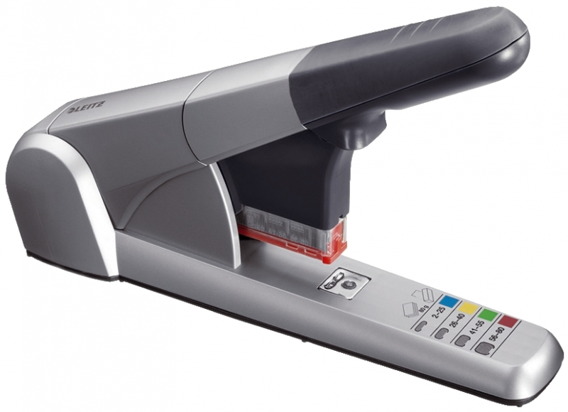 Block-Heftgerät, Farbe/Typ silber, Hersteller: Leitz, Herstellernummer: 5551-00-84, EAN: 4002432364008, Feste Heftung. Heftleistung: 8 mm. Springfachlademechanik mit Kassettensystem zum Austauschen von Klammern für unterschiedliche Blattstapelhöhen. Inkl. 4 Einweg-Kassetten für die Heftleistungen 25 - 40 - 55 - 80 Blatt. 10 Jahre Garantie (bei Verwendung von Leitz Heftklammern)., Preis je Stück
