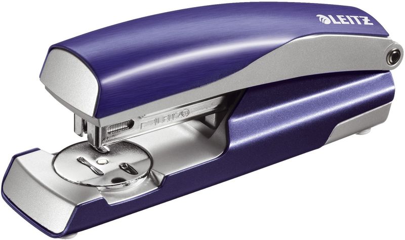 Leitz Büroheftgerät NeXXt Style, mit Oberlademechanik, für offene und geschlossene Heftung, Tackerfunktion, mit Drehamboss und integriertem Entklammerer, mit gebürsteter Metall-Oberfläche und Silber als Kontrastfarbe, mit Direct Impact Technology (DIT) für perfektes und problemloses Heften, inklusive 200 Heftklammern 24/6. Heftleistung: 3 mm/30 Blatt. Heftklammern: 100 x 24/6 oder 140 x 26/6. Einlegetiefe: 65 mm. Material: Metall mit Kunststoff. Farbe: titan blau.