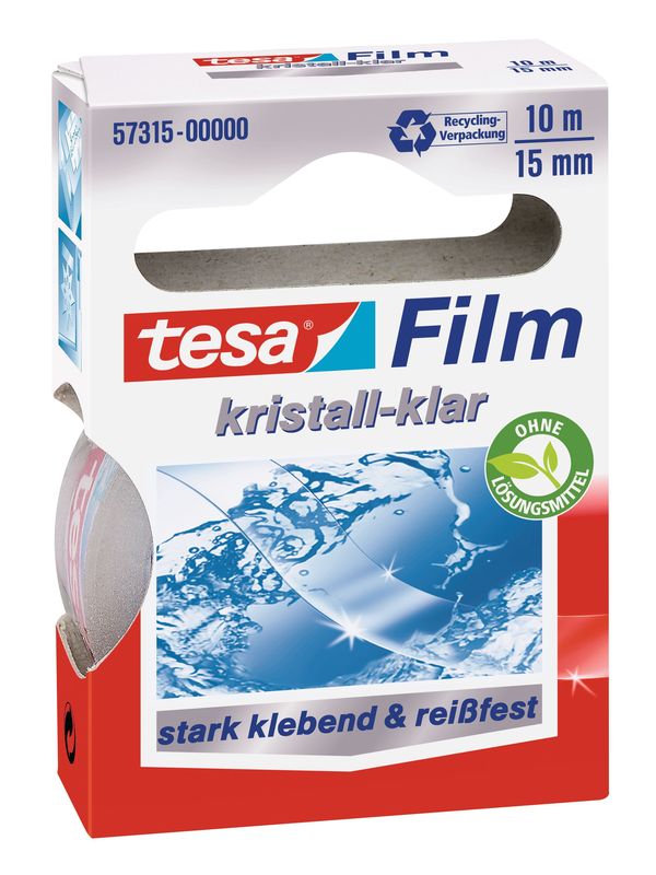 Film kristall-klar, Größe (B x L) 15 mm x 10 m, Hersteller: Tesa®, Herstellernummer: 57315-00000, EAN: 4042448039941, Das hochwertige Klebeband tesafilm® kristall-klar eignet sich mit seiner herausragenden Transparenz ideal zum unsichtbaren Zukleben, Befestigen, Reparieren, Fixieren und Verpacken. Hohe Transparenz, stark klebend, geräuschloses Abrollen. Nahezu unsichtbar auf fast allen Untergründen. Hohe Alterungsbeständigkeit, PP-Folie und lösungsmittelfreie Klebmasse. Für alle tesafilm® Abroller geeignet., Preis je Stück