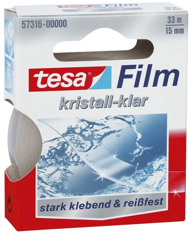 Film kristall-klar, Größe (B x L) 15 mm x 33 m, Hersteller: Tesa®, Herstellernummer: 57316-00000, EAN: 4042448039972, Das hochwertige Klebeband tesafilm® kristall-klar eignet sich mit seiner herausragenden Transparenz ideal zum unsichtbaren Zukleben, Befestigen, Reparieren, Fixieren und Verpacken. Hohe Transparenz, stark klebend, geräuschloses Abrollen. Nahezu unsichtbar auf fast allen Untergründen. Hohe Alterungsbeständigkeit, PP-Folie und lösungsmittelfreie Klebmasse. Für alle tesafilm® Abroller geeignet., Preis je Stück