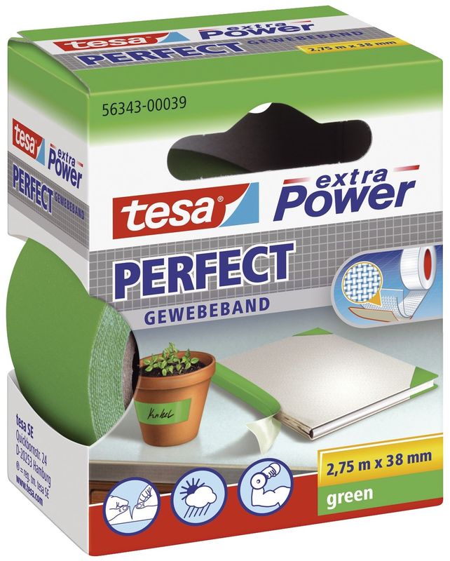 Gewebebänder extra Power Größe: 38 mm x 2,75 m, Farbe grün, Hersteller: Tesa®, Herstellernummer: 56343-00039, EAN: 4042448044259, Klebeband aus reißfestem Gewebe, wetterfest und wasserabstoßend. Zum Basteln, Reparieren, Befestigen, Binden, Verstärken, Kennzeichnen etc. Beschreibbar. Für dauerhafte, hoch belastbare und stabile Ergebnisse., Preis je Stück