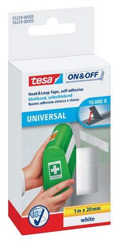 Klettbänder und -punkte zum Aufkleben Klettbänder Größe: 20 mm x 1m, Farbe weiß, Hersteller: Tesa®, Herstellernummer: 55224-3-0, EAN: 4042448859891, Ideal fürs Büro und für zu Hause. 10.000 Mal auf & zu. Zum Fixieren von leichten Gegenständen für feste Verbindungen, immer wieder leicht zu trennen. Auch zum Basteln und Dekorieren geeignet., Preis je Stück