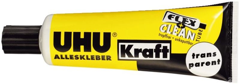 ALLESKLEBER Kraft FLEX + CLEAN, Inhalt 42 g, Hersteller: UHU®, Herstellernummer: 45040, EAN: 4026700450408, Universalkleber mit hoher Klebekraft. Für Ein- und Zweiseiten-Klebeverfahren verwendbar. Ideal für sichtbare Klebefugen und transparente Materialien. Für Papier, Pappe, Karton, Filz, Textil, Glas, Gummi, Holz, Keramik, Kork, Leder, Metall, Porzellan, Hart-/Weich-Kunststoffe, Weich-Schaumstoffe, Stein, Resopal®, Bakelit® und Duroplast., Preis je Stück