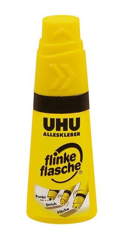 ALLESKLEBER flinke flasche, Inhalt 35 g, Hersteller: UHU®, Herstellernummer: 46300, EAN: 4026700463002, Universeller Kunstharzklebstoff in weicher, handlicher Flasche. Bei 60° C auswaschbar. Mit Drehverschluss für Punkt-, Strich- und Flächenklebung. Für Papier, Pappe, Karton, Filz, Textil, Glas und Leder., Preis je Stück