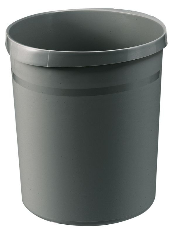 Papierkorb GRIP, 18 Liter. Der klassische Papierkorb in zeitgemäßem Design. Der umlaufende ergonomische Griffrand mit 2 praktischen Griffmulden sorgt für ein einfaches Tragen und sicheres Anbringen von Müllsäcken. Ideal für Büro und Privatbereich. Standfest und stabil. Die seidenmatte Außenoberfläche gilt als unempfindlich gegen Schmutzeinwirkungen. Dank der glatten Innenoberfläche ist der Papierkorb besonders reinigungsfreundlich. Zubehör optional: Abfalleinsatz 1 Liter, (Art.-Nr.: 1835), Abfalleinsatz 2,5 Liter (Art.-Nr.: 18355). Fassungsvermögen: 18 Liter. Made in Germany. Durchmesser (O x U x H): 312 x 237 x 350 mm. Material: hochwertiger Kunststoff, Polypropylen (PP). Farbe: dunkelgrau.