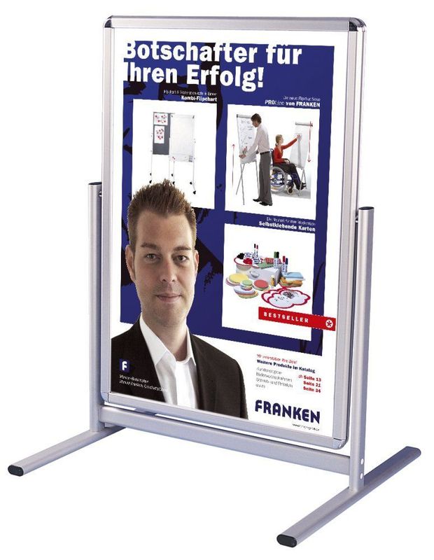 Alu-Kundenstopper, Größe A1, Hersteller: Franken, Herstellernummer: BS1302, EAN: 4016946190503, Kundenstopper für den Außenbereich. Mit reflexfreier Kunststof-heibe mit UV-Filter und silbereloxiertem Aluminiumrahmen. Klemmprofiltechnik mit Abdichtungsband macht die Tafel wasserdicht. Die schweren Fußprofile sorgen für erhöhte Windbeständigkeit., Preis je Stück