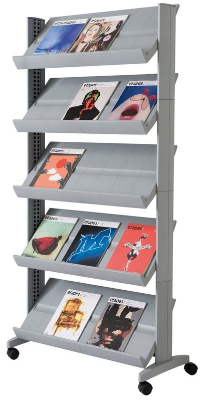 Mobile Prospektständer, Farbe grau, Größe (B x T x H) 85,5 x 38,5 x 167,5 cm, Hersteller: PAPERFLOW, Herstellernummer: 255N.02, EAN: 3660141880649, Platzsparende Prospektständer im stillvollen Design. Solide Ständerkonstruktion mit Metallinnenstruktur und Kunststoffummantelung. Ablageböden im Winkel verstellbar (0° - 75° ), sowie stufenweise in der Höhe. Extra breite Anschlagskante 35 mm für hohes Fassungsvermögen. Einfacher Aufbau ohne Werkzeug., Preis je Stück