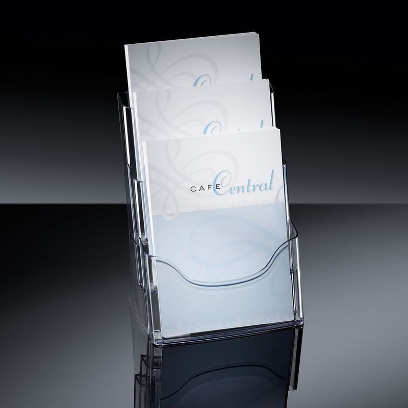 Tisch-Prospekthalter acrylic Tisch-Prospekthalter mit 3 Fächer, Format 3 x A4, Hersteller: Sigel®, Herstellernummer: LH 130, EAN: 4004360982064, Aus hochwertigem, glasklarem Acryl. Für eine funktionale und stilgerechte Präsentation verschiedener Drucksachen. Fülltiefe: 30 mm. Standsicher dank geriffelter Bodeninnenseite. Die verschiedenen Größen lassen sich problemlos kombinieren und miteinander verketten., Preis je Stück