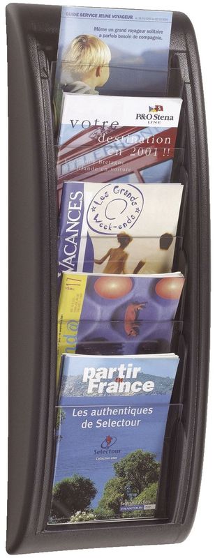 Wand- Prospekthalter Quick Blick Wandhalter A5, Farbe schwarz, Größe (B x T x H) 22,7 x 9,5 x 65 cm, Hersteller: PAPERFLOW, Herstellernummer: 4063.01, EAN: 3660141203646, Wand- Prospekthalter aus Polystyrol für Kataloge, Prospekte usw. Transparente Sichtfenster erlauben Vollansicht der Dokumente. Kominierbar zu den kompletten Wandregalen. Einfache Wandmontage (Schrauben nicht im Lieferumfang)., Preis je Stück