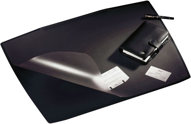 Schreibunterlage ARTWORK, Farbe schwarz, Hersteller: Durable, Herstellernummer: 7201-01, EAN: 4005546711171, Formschöne Schreibunterlage mit reflexarmer, transparenter Abdeckung. Ideal zum Unterlegen von Notizen und Verzeichnissen. Rutschfest, abwaschbar und strapazierfähig. Größe: 68 x 53 cm., Preis je Stück