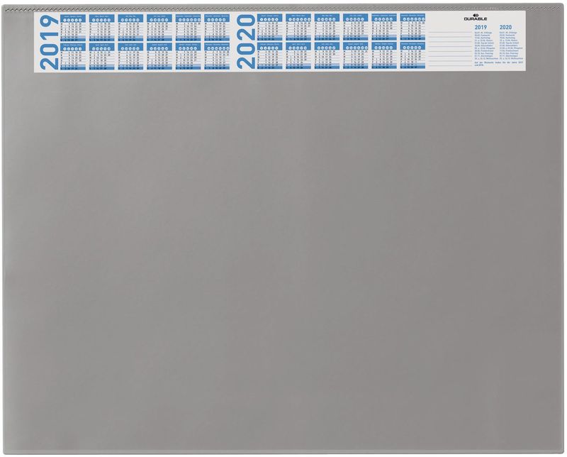 Schreibunterlage mit Jahreskalender, Farbe grau, Hersteller: Durable, Herstellernummer: 7204-10, EAN: 4005546710655, Rutschfest, mit schreibelastischer, am oberen Rand angeschweißter Abdeckung. Ideal zum Unterlegen von Notizen, Verzeichnissen etc. Mit Jahres-Kalender für 4 Jahre. Größe: 65 x 52 cm., Preis je Stück