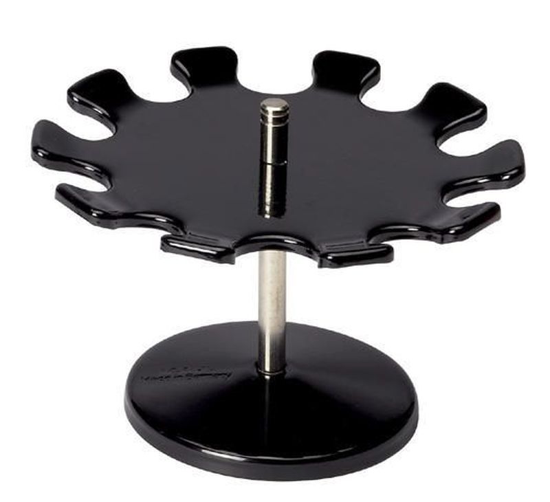 Stempelträger 510 für 12 Stempel, Ø 160 mm, Farbe schwarz, Hersteller: Maul, Herstellernummer: 510 1290, EAN: 4002390002868, Drehbarer Tellerrand leicht nach oben gebogen, die Stempel sitzen fest, fallen beim Drehen nicht raus. Sehr stabil und standfest. Aus pulverbeschichtetem Metall: kratzfest und unempfindlich. Säule und Griff vernickelt. Fuß-Ø: 85 mm, Höhe: 100 mm. 3 Jahre Garantie., Preis je Stück