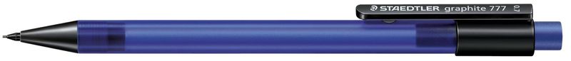 Druckbleistift, Drehbleistift, Schaftfarbe blau, Clip schwarz, Hersteller: Staedtler®, Herstellernummer: 777 07-3, EAN: 4007817777183, Druckbleistift zum Schreiben mit starrer Minenführung. Gummierter, transparent-gefrosteter Schaft. Mit B-Feinminen. Extra großer PVC- und latexfreier Radierer., Preis je Stück