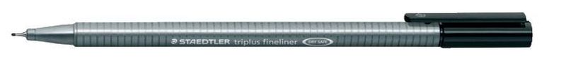 Feinschreiber, Schreibfarbe schwarz, Hersteller: Staedtler®, Herstellernummer: 334-9, EAN: 4007817334089, Mit superfeiner, metallgefasster Spitze. Strichstärke ca. 0,3 mm. Ergonomischer Dreikant-Schaft für entspanntes Schreiben. DRY SAFE - kann tagelang offen liegen ohne einzutrocknen (Test ISO 554), Tinte auf Wasserbasis. Airplane-safe - automatischer Druckausgleich verhindert das Auslaufen des Stiftes im Flugzeug. Auswaschbar aus den meisten Textilien. Kappe mit Clip und Abschlusskopf in Schreibfarbe., Preis je Stück