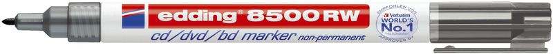 CD-, DVD-, BD-Marker, Schreibfarbe schwarz, Hersteller: Edding, Herstellernummer: 04 8500 001, EAN: 4004764843138, Spezialmarker mit weicher Rundspitze für die schonende Beschriftung von CD-Rohlingen, CDs, CD-ROMs, DVDs und Blu-ray Discs. Pigmenttusche auf Wasserbasis, ohne Lösungsmittel, somit wird die Datenträgerschicht nicht angegriffen. Kappe und Spitze in Schreibfarbe. e-8400: permanent, nach dem Antrocknen wisch- und wasserfest. e-8500: Beschriftung mit angefeuchtetem Tuch rückstandslos entfernbar. Empfohlen von Verbatim. , Preis je Stück