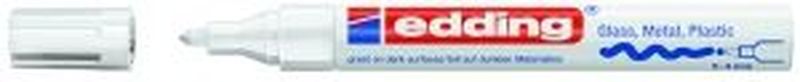 Lackmarker 750/751/780, Schreibfarbe weiß, Hersteller: Edding, Herstellernummer: 04 750 049, EAN: 4004764018642, Paint-Marker zum volldeckenden, licht-, wisch- und wasserbeständigen Markieren mit lackartigem Effekt. Geruchsarme Pigmenttusche, hitzebeständig. Für nahezu alle Materialien, auch für dunkle und transparente Untergründe. Sehr hohe Abriebbeständigkeit auf fast allen Oberflächen. Spitze und Kappe in Schreibfarbe. Auswechselbare Schreibspitzen., Preis je Stück