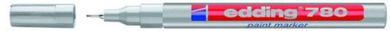 Lackmarker 750/751/780, Schreibfarbe silber, Hersteller: Edding, Herstellernummer: 04 780 054, EAN: 4004764498376, Paint-Marker zum volldeckenden, licht-, wisch- und wasserbeständigen Markieren mit lackartigem Effekt. Geruchsarme Pigmenttusche, hitzebeständig. Für nahezu alle Materialien, auch für dunkle und transparente Untergründe. Sehr hohe Abriebbeständigkeit auf fast allen Oberflächen. Spitze und Kappe in Schreibfarbe. Auswechselbare Schreibspitzen., Preis je Stück