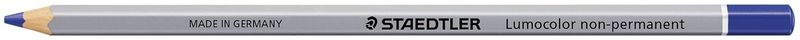 Lumocolor® non-permanent omnichrom Trockenmarker. Produktverwendung: für fast alle Flächen. Ausführung Stift: Holz, Schaft lackiert. Wasserlöslich, aus vielen Textilien auswaschbar, geruchlos, farbintensiv und lichtecht. Länge: 175 mm. Farbe des Schaftes: silber, Tauchkappe in Minenfarbe. Strichstärke: richtet sich nach Abschriebwinkel. Schreibfarbe von Schreibgeräten: blau.