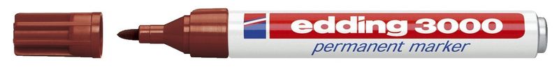 Permanentmarker 3000/3300, Schreibfarbe braun, Hersteller: Edding, Herstellernummer: 04 3000 007, EAN: 4004764008025, Der Klassiker! Nachfüllbarer Marker für die Beschriftung von fast allen Materialien, auch Metall, Glas und Kunststoff. Geruchsarme Tusche, schnelltrocknend, lichtbeständig, wisch- und wasserfest. Auswechselbare Schreibspitze. Hochwertiger Aluminiumschaft. Kappe und Spitze in Schreibfarbe., Preis je Stück