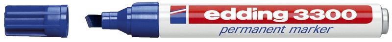 Permanentmarker 3000/3300, Schreibfarbe blau, Hersteller: Edding, Herstellernummer: 04 3300 003, EAN: 4004764010219, Der Klassiker! Nachfüllbarer Marker für die Beschriftung von fast allen Materialien, auch Metall, Glas und Kunststoff. Geruchsarme Tusche, schnelltrocknend, lichtbeständig, wisch- und wasserfest. Auswechselbare Schreibspitze. Hochwertiger Aluminiumschaft. Kappe und Spitze in Schreibfarbe., Preis je Stück
