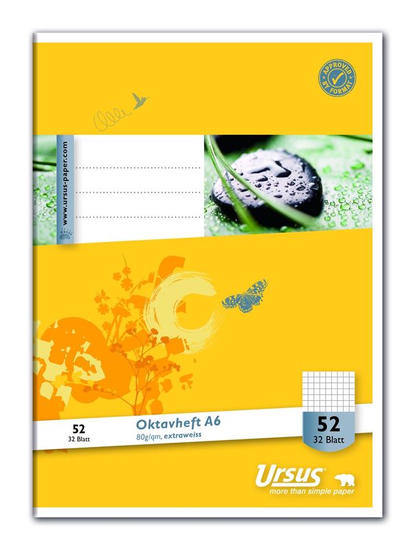 Schulheft, Lineatur 52: kariert, Hersteller: Format-X, Herstellernummer: 040632052, EAN: 9002244556276, Klimaneutrales (CO2 neutrales) 80 g/qm Pure Impact Umweltschutzpapier. Größe A6. Heft mit 32 Blatt., Preis je Stück