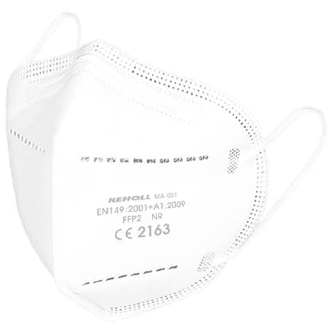 Atemschutzmaske FFP2 - weiß, 20 Stück KEHOLL? FFP2 Einweg Atemschutzmaske ohne Ventil mit hohem Wirkungsgrad für Erwachsene in Einheitsgröße einzeln in Polybeutel. Schützt bei korrekter Anwendung mit 95% Filterleistung den Träger beim Einatmen und Ausatmen. Filtert: Aerosole (Viren), Staub, Smog durch non-woven Vliesmaterial in 5-lagiger Ausführung. Lieferung flach und für das Gesicht vorgeformt mit eingenähtem Metallbügel für Anpassung an Nasenpartie. Mit 2 Gummibändern für die Befestigung an den Ohren. Zertifiziert nach EN Norm-Nummer EN149-2001 + A1:2009. Geprüft, und mit CE2163 Nr. auf Maske aufgedruckt. Bei richtiger Anwendung kann der Träger der Atemschutzmaske vor Tröpfcheninfektion geschützt werden. Die Maske kann ca. 4-8 Stunden getragen werden. Wenn diese durchfeuchtet ist, wird diese unwirksam und soll über einen geschlossenen Restmüllbehälter entsorgt werden. Der Mindestabstand von 2 m zu den Mitmenschen wird trotzdem empfohlen. Diese Schritte müssen beim Tragen einer Maske befolgt werden: Waschen (und nach Möglichkeit desinfizieren) Sie Ihre Hände gründlich. Halten Sie die Maske am oberen und unteren Ende fest und platzieren Sie sie über Nase und Mund. Ziehen Sie die Bänder über die Ohren und spannen Sie die Maske so an, dass es keine Lücken zwischen Maske und Gesicht mehr gibt. Biegen sie den Nasenbügel zu zurecht, dass er Ihre Nasenpartie lückenfrei umschliesst. Fassen Sie danach die Vorderseite der Maske nicht mehr an. Wenn es doch passiert, müssen Sie erneut die Hände waschen. Entfernen Sie die Maske, ohne die Vorderseite zu berühren. Waschen und desinfizieren Sie Ihre Hände erneut gründlich. Schutzmaske darf nicht gewaschen werden , eine Behandlung in der Mikrowelle ist unwirksam. Maske nicht verbiegen, weil sonst die Filterwirkung reduziert werden kann. Bei optimaler Lagerung bis zu 2 Jahre haltbar./P>