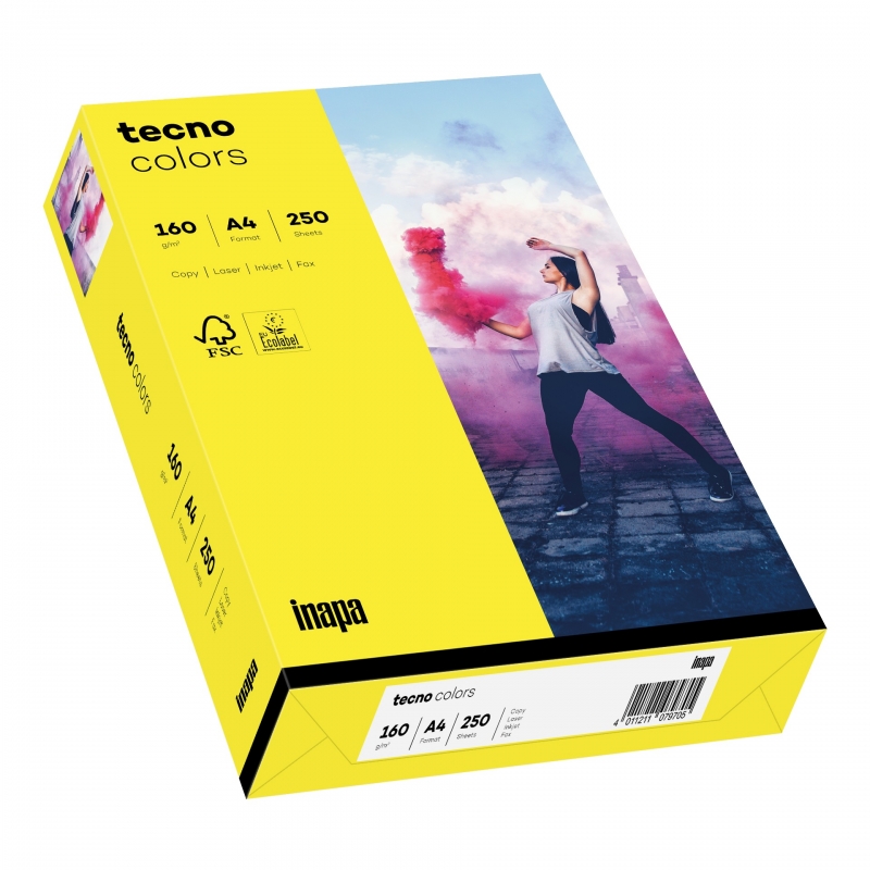 Multifunktionspapier tecno® colors - A4, 160 g/qm, intensivgelb, 250 Blatt