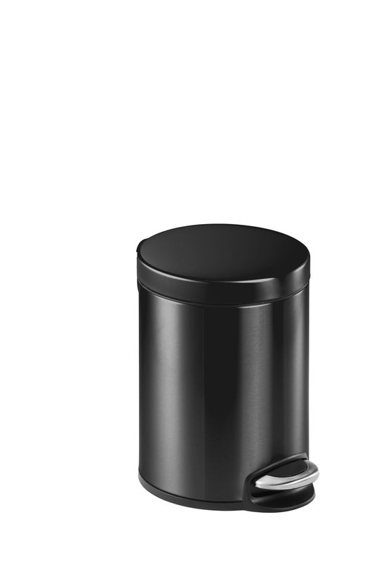 Treteimer. Material und Form: Edelstahl, rund. Anzahl der Sortierfächer: 1. Ausstattung: Deckel vorhanden. Herausnehmbarer Innen-Eimer mit Henkel, geräuschloses Schließen des Deckels, sicherer Stand und Korrosionsschutz durch umlaufenden Kunststoffsockel, integrierter Tragegriff am Deckelscharnier. Durchmesser: 205 mm. Höhe: 290 mm. Tiefe: 260 mm. Volumen: 5 l. Farbe: anthrazit.