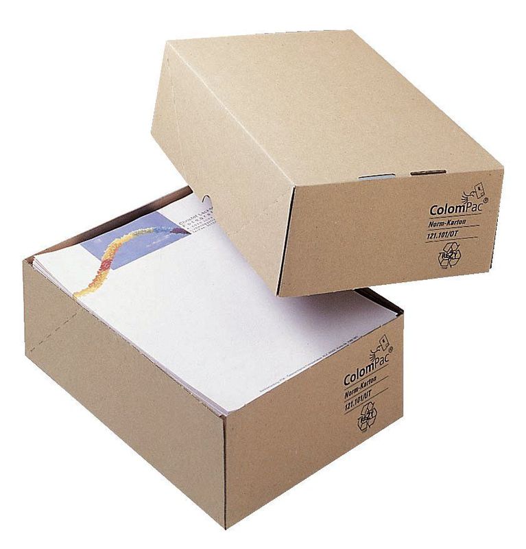 Schachtel (Karton/Pappe, Packmittel), Innengröße 305x215x100 mm (A4), Außengröße 311x227x102 mm, Hersteller: ColomPac®: Herstellernummer: 552110, EAN: 4033657000075, Höhenvariabler Aufrichtekarton aus fester Wellpappe zum Versenden von Drucksachen etc. Farbe: braun. Lieferung flachliegend., Preis je Stück