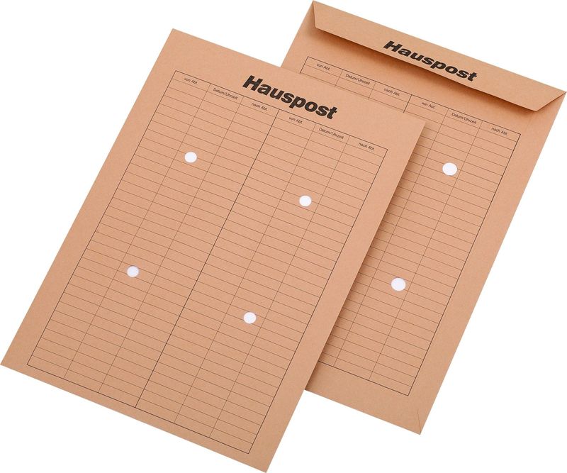 Versandtasche, Größe C4 (229x324 mm), Papier 110 g/qm, braun, Hersteller: Mail Media: Herstellernummer: 381047, EAN: 4011839991199, Mit Tabellendruck und 4 Sichtlöchern, nicht klebend. Karton mit 250 Stück., Preis je Packung