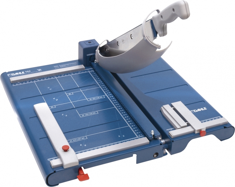 Hebelschneidemaschine mit stabilem Metalltisch. Geschraubtes, geschliffenes Ober- und Untermesser aus Solingen. Sicherheitsautomatik, automatische Pressung, 2 Winkelanlagen und verstellbarer Rückschlag. Tragekomfort durch Griffmulden. Mit Komfort-PLUS-Ausstattung bestehend aus: Vordertisch, Schmalstreifen-Schneidevorrichtung und Lasermodul inklusive. Angabe Tischgröße inklusive Vordertisch. Schnitthöhe: 3,5 mm, Farbe: blau, GS-geprüft.