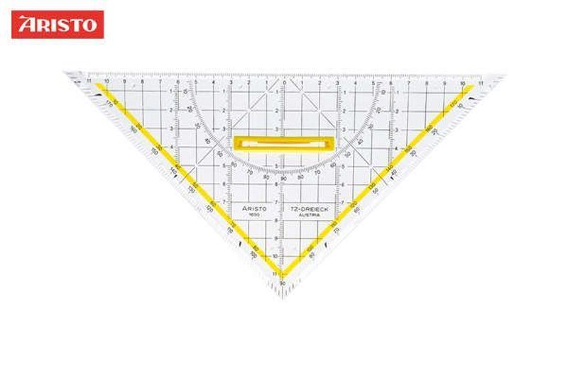 Geometrie TZ-Dreiecke, Hypotenuse 250 mm, Hersteller: Aristo, Herstellernummer: AR1650/4, EAN: 9003182165049, TZ-Dreiecke aus glasklarem Plexiglas. Maßbeständige und dauerhafte Spitzenqualität. Teilung und Beschriftung laut Norm. 1 cm Gitternetz, mehrere Millimeter-Teilungen senkrecht zur Hypotenuse, markierte Winkel in 7° und 42° für perspektivisches Zeichnen, markierte Winkel 75° für Schrägbeschriftung. Winkelbezifferung gelb hinterlegt, markierte 45° Linien für leichteres Schraffieren. Mit Tuschnoppen., Preis je Stück