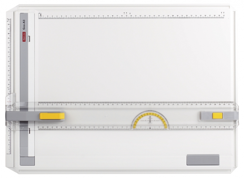 Zeichenplatten Geo-Board, für Format A3 mit Zusatzarrietierung, Hersteller: Aristo, Herstellernummer: AR7033, EAN: 9003182070336, Bewährte Qualität. Platte aus stabilem, schlagfestem Kunststoff. Dauergleitprofil der Zeichenschiene. "L"-System ermöglicht auch im unteren Blattbereich das Zeichnen oberhalb der Schiene. Ergonomisch geformter Griff mit "STOP-and GO"-Mechanik und Freilau-haltung. Rutschsicherungen an der Plattenunterseite eingegossen. Magnetklemmschiene mit Sichtfenstern zur Kontrolle des Blattanschlages. Integrierte Zirkelabgreifteilung zum schnellen Einstellen von Radien. , Preis je Stück